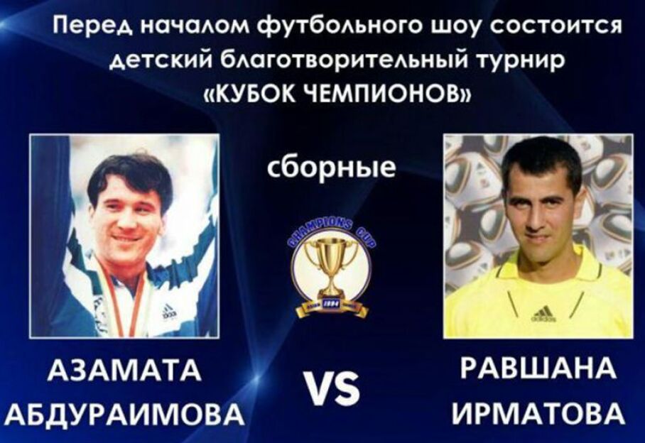 Soat 15:00da boshlanadigan shou uchrashuvda Azamat Abduraimov jamoasi Ravshan Ermatov jamoasiga qarshi zalga tushadi. Ikki jamoa safida shou biznes vakillari ham o'rin oladilar. Avvaliga 2006 yilda tavallud topgan futbolchilar ishtirokida final. Birin-ketin o'zbek estradasi yulduzlarining chiqishlari. Boshlovchi Mirzahakim To'xtamirzaev va Davron Fayziev. Tanaffus paytida O'zbekiston muxlislar klubi sardori Abdurahmon Fozilov hamda tomoshabinlar o'rtasida tanlov. Sizni ajoyib sovg'alar kutyapti. Aslo afsuslanmaysiz.