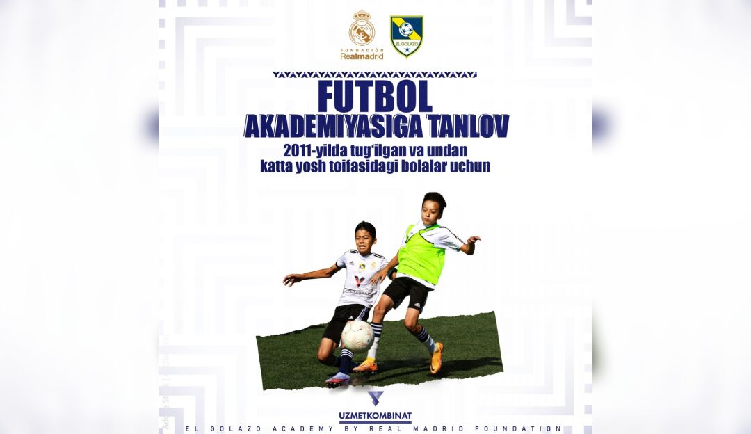“El Golazo Academy Powered by Real Madrid Foundation” футбол академияси янги мавсум учун номзодларни саралашни бошлади. Бекободга ташриф буюринг, мураббийларимиз синовидан ўтинг ҳамда жаҳоннинг энг машҳур жамоаси – "Реал Мадрид" услубияти асосида фаолият юритувчи Академия ўқувчисига айланинг.