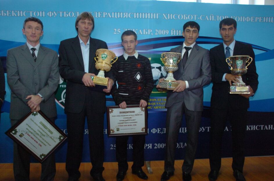 Odil Ahmedov bir guruh futbol jurnalistlari bilan birga