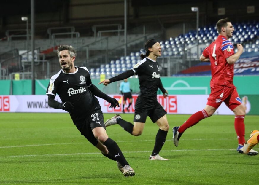 Nemis grandi sensacion ravishda mag'lubiyatga uchradi. Asosiy vaqtda durang (2:2) qayd etilgach, qo'shimcha bo'limlarga murojaat qilindi. Ammo ekstra-taymlarda gol ko'rmadik. Penaltilar seriyasi esa 2-divizion klubining foydasiga hal bo'ldi. Seriyada yarim himoyachi Mark Rokaning xatosi "Bavariya"ga qimmatga tushdi.