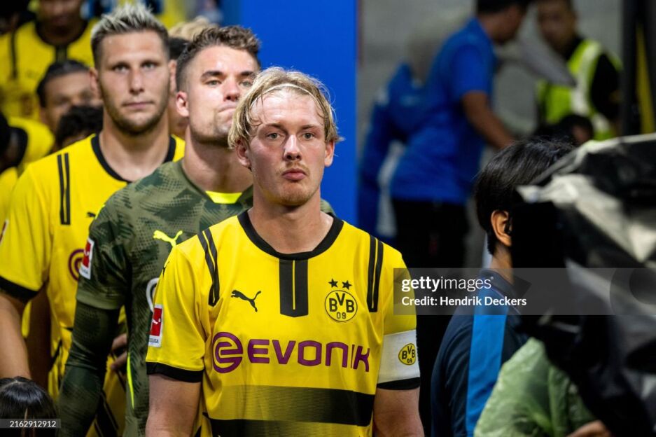 "Borussiya"ning 1-taym uchun tarkibi: Mayer, Ryuerson, Zyule, Lyurs, Rote, Ajil, Nmecha, Brandt, Adeyemi, Mukoko, Brunner.