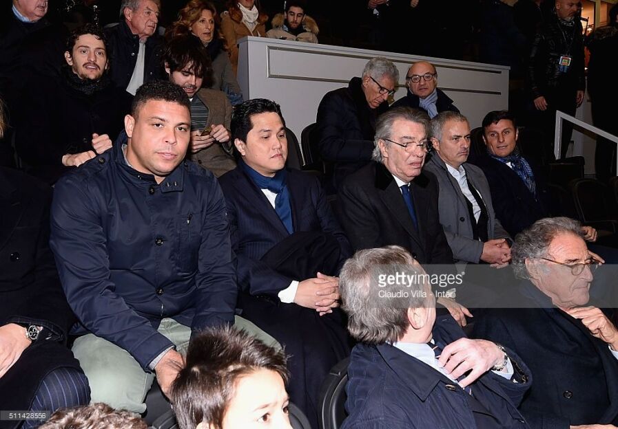 Моратти, Роналдо ва Моуриньо клубнинг ҳозирги хўжайини Эрик Тохир ва «Интер» вице президенти Хавьер Занетти билан бирга учрашувни томоша қилишди.