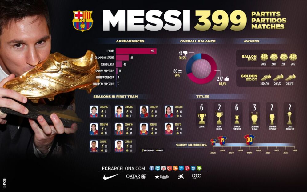 Бу борада 701та ўйин ўтказган Хави етакчи, иккинчи ўринда Карлес Пуйоль (589), учинчи ўринда эса Мигели (549 встреч) жойлашган. Месси ҳозирча бу рўйхатда 11-поғонада бормоқда.
