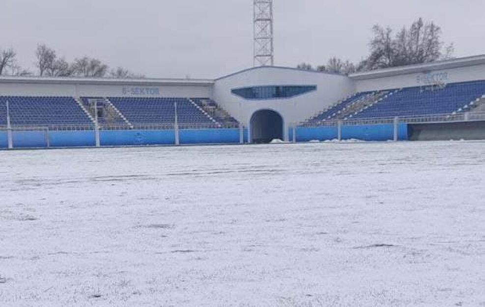 Soat 16:15da boshlanadigan o'yindan oldin stadion qordan tozalandi.