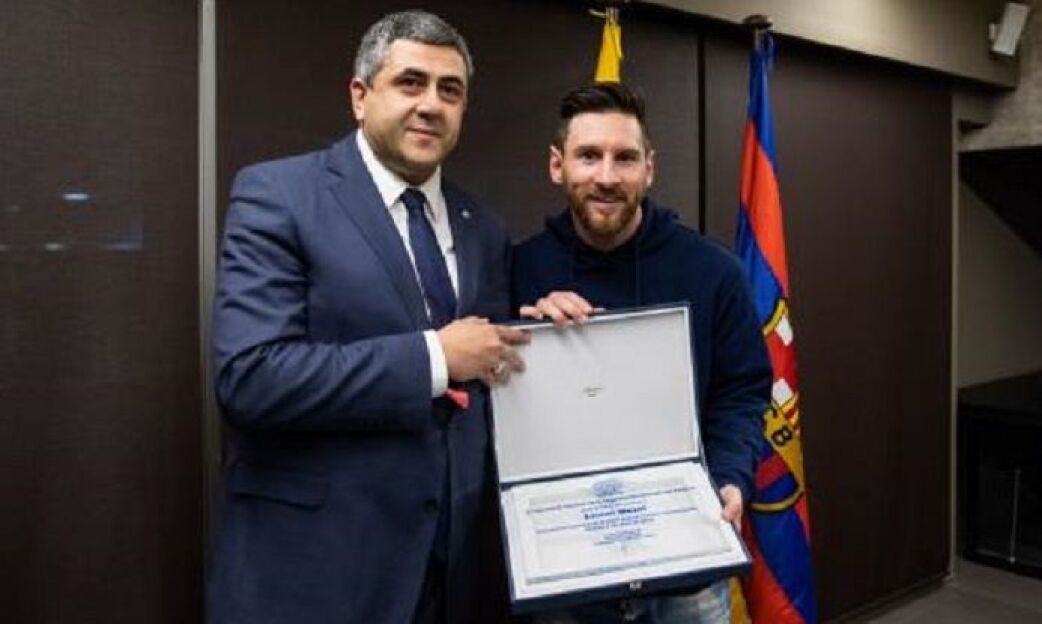 Tashkilot bosh kotibi Zurab Pololikashvili shanba oqshomida “Kamp Nou”da o'tkazilgan “Leganes” (3:1) bilan o'yindan keyin argentinalik futbolchiga elchilik nishonini topshirgan.