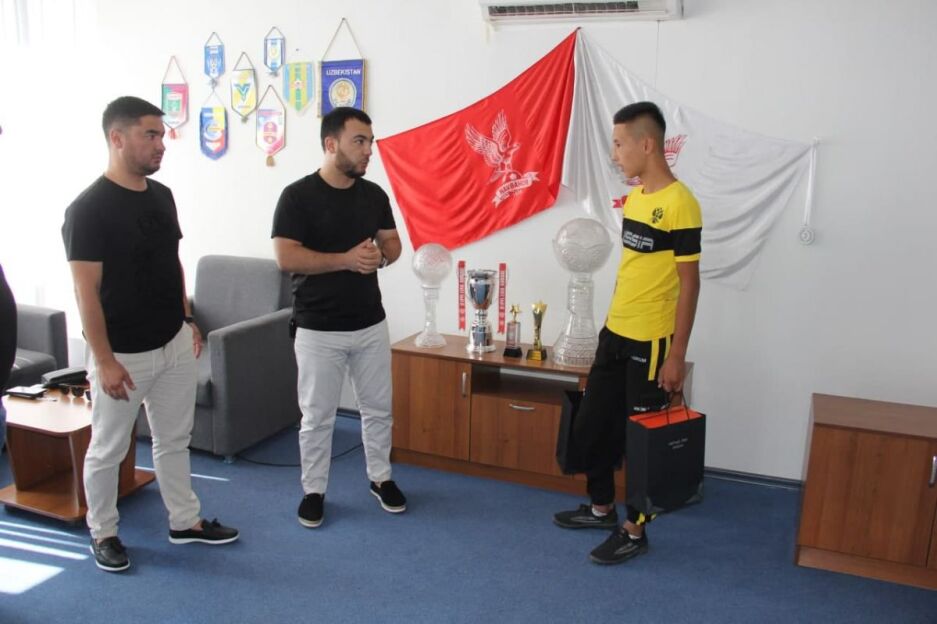 Shundan so'ng, Otabek Samatov Fayozbek Madmarovga viloyat hokimi Shavkat Abdurazzoqovning maxsus sovg'asi – krossovka hamda sport kiyimlarini topshirdi.