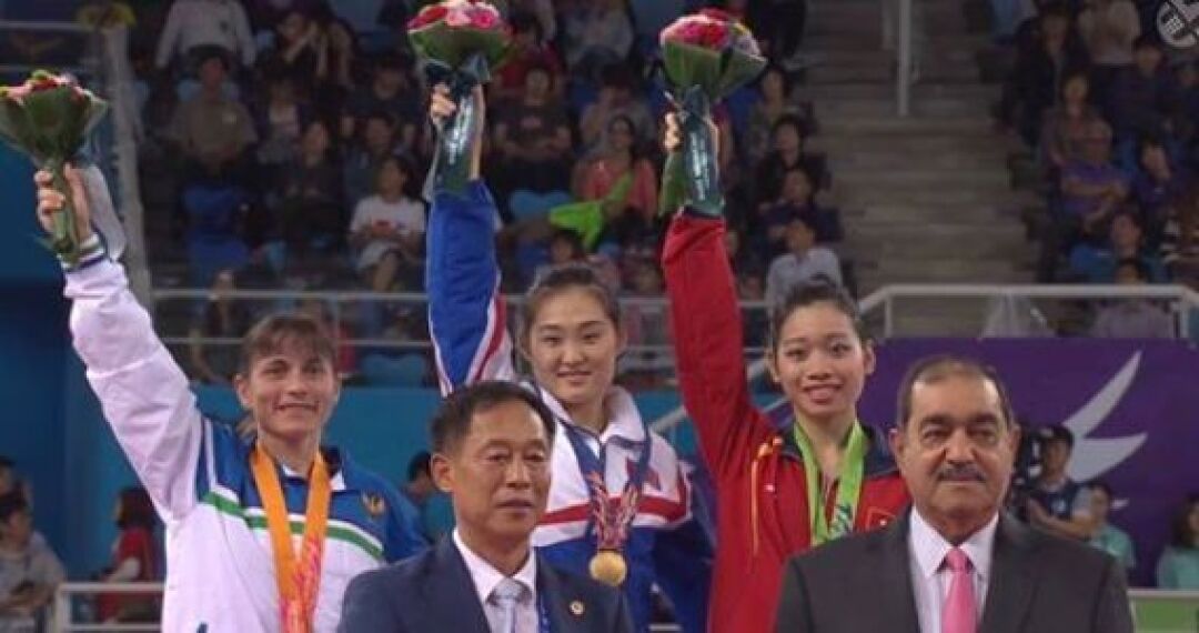 O'zbekiston sporti iftixori Oksana Chusovitina terma jamoamiz g'aznasiga o'zining 39 yoshida Osiyo o'yinlarining kumush medalini tuhfa etdi. Sport gimnastikachimiz tayanib sakrash bahslarida 14.750 ball bilan shohsupaning ikkinchi pog'onasidan joy oldi.