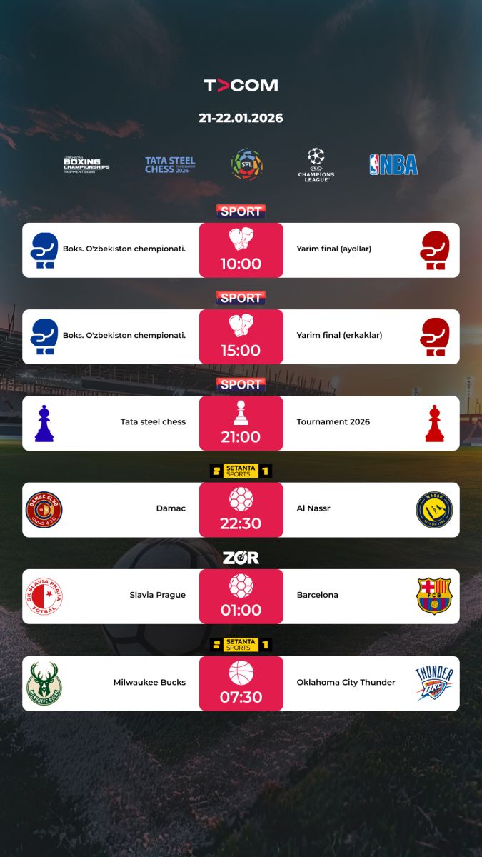 21-22.01.2026 taqvimidan o'rin olgan uchrashuvlarni TVCOM onlayn kinoteatrida kuzating.