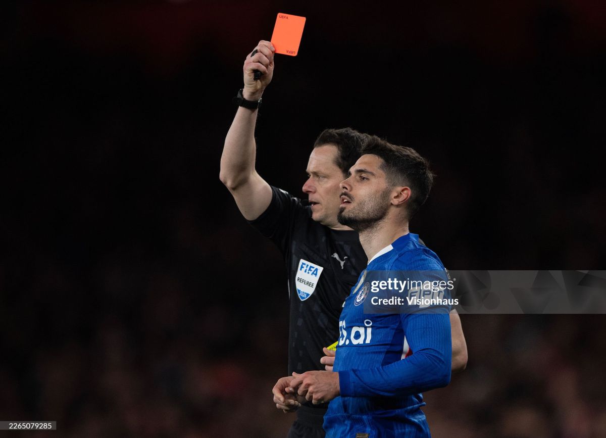 27 yoshli futbolchi derbining 67-daqiqasida bosh hakamning faoliyatiga etirozi uchun ilk sariq kartochkasini olgandi. 70-daqiqada u raqibi Gabriel Martinelliga qarshi qo'pollik ishlatib, ikkinchi kartochkasini olganidan keyin hakam Darren Inglend bilan hissiyotlarga berishib, tortishdi. Shuningdek, maydonni tark etganidan keyin to'rtinchi hakam bilan ham bahslashdi.
