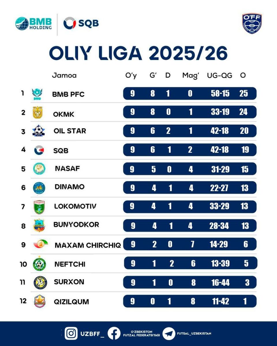 Futzal. Bugun 4-turga start beriladi