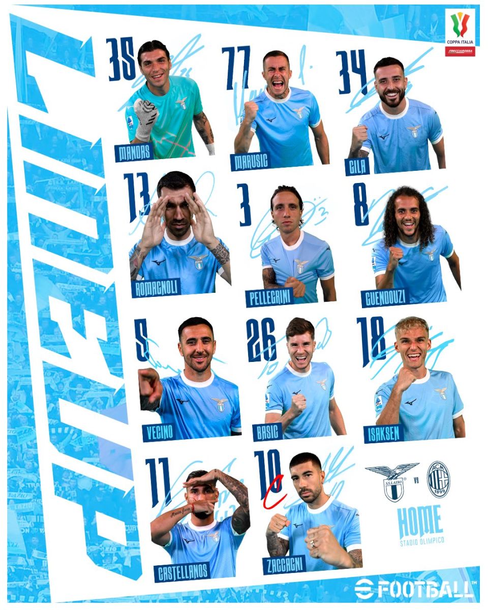 "Lacio": Mandas - Marushich, Xila, Romanoli, Pellegrini - Genduzi, Vesino, Bashich - Isaksen, Dzakkani, Kastelyanos.