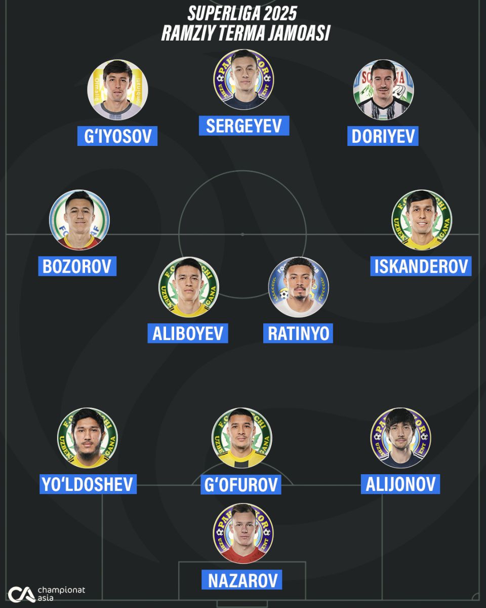 Алижонов, Алибоев, Искандеров, Сергеев... Championat.asia талқинида Суперлига-2025 рамзий терма жамоаси