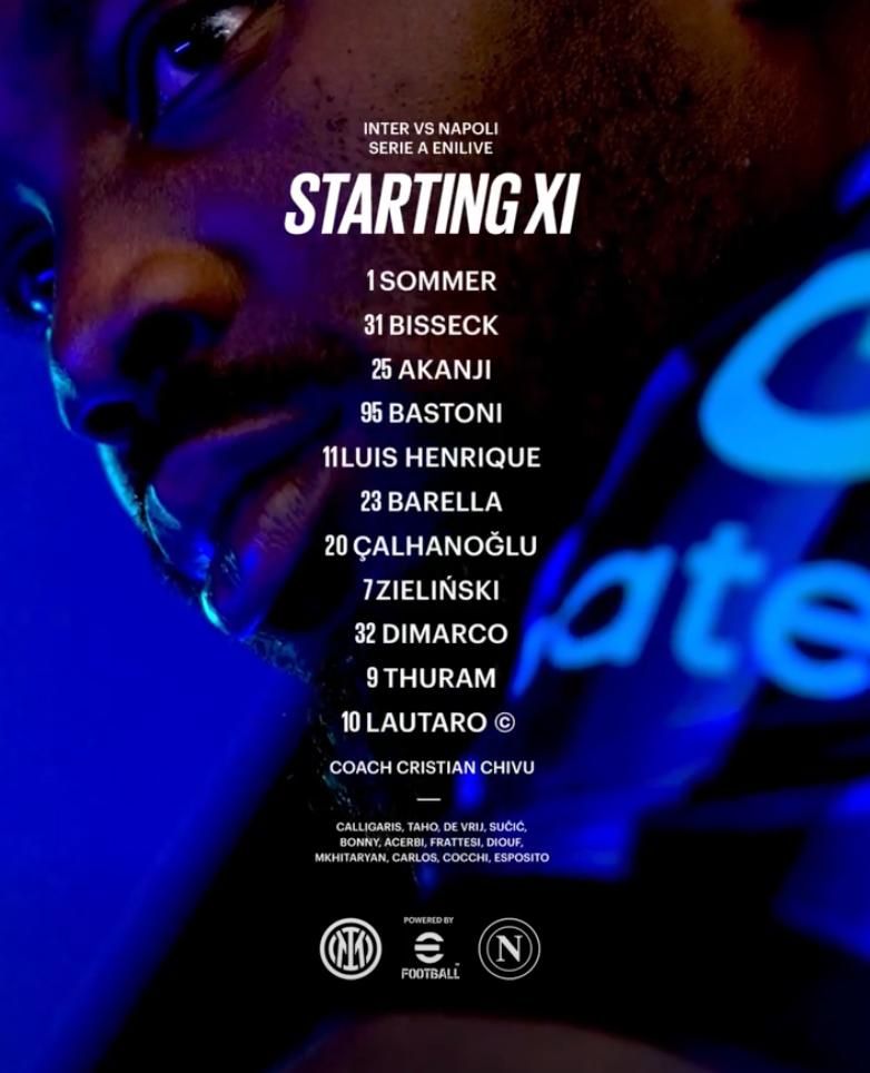 Федерико Димарко 9-дақиқада ҳисобни очди. Скотт Мактоминей эса 26-дақиқада мувозанатни тиклади. 71-дақиқада неаполликлар бош мураббийи Антонио Конте жамоасига нисбатан белгиланган пенальти учун норозилигини очиқдан-очиқ кўрсатгани ортидан қизил карточка олди. Хакан Чалханоглу эса 73-дақиқада ўн бир метрлик нуқтадан рақиб дарвозасини ишғол қилди. Аммо, “Наполи” хавбеки Скотт Мактоминей 81-дақиқада ҳисобни тенглаштириб, жамоасини мағлубиятдан қутқариб қолди.