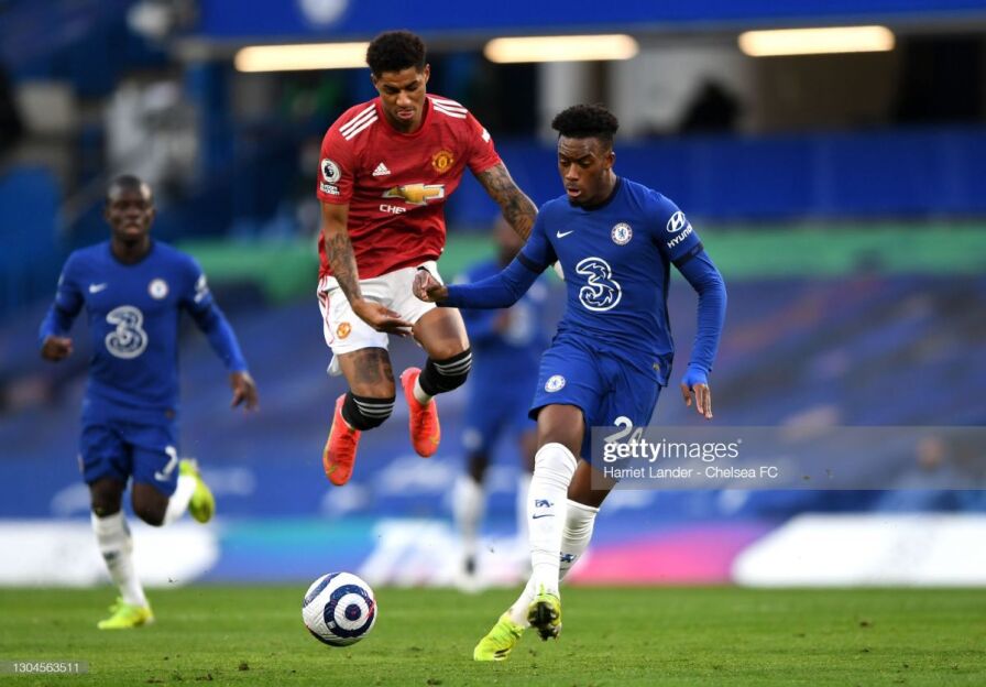 44. "Yunayted"da ajoyib vaziyat yuzaga kelgandi. Reshford to'pni to'xtatganidan keyin Kante to'pni burchakka chiqarib yubordi.