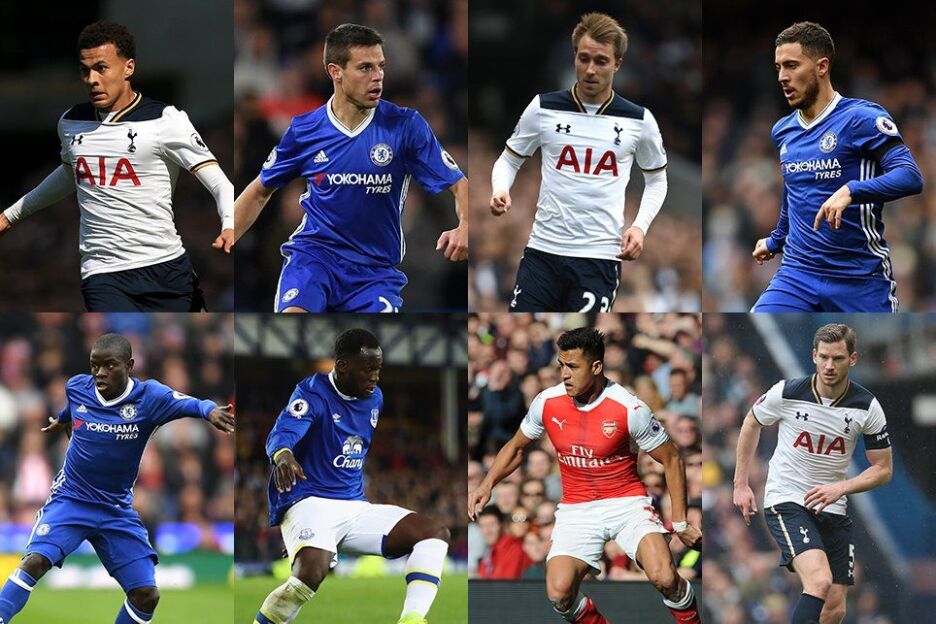 Деле Алли ("Тоттенхэм")Сезар Аспиликуэта ("Челси")Кристиан Эриксен ("Тоттенхэм")Эден Азар ("Челси")Нголо Канте ("Челси")Ромелу Лукаку ("Эвертон")Алексис Санчес ("Арсенал")Ян Вертонген ("Тоттенхэм")