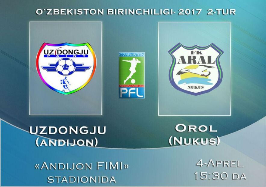 Andijonning “UzDongJu” jamoasi o'z maydonida Nukusning “Orol” jamoasini qabul qiladi.