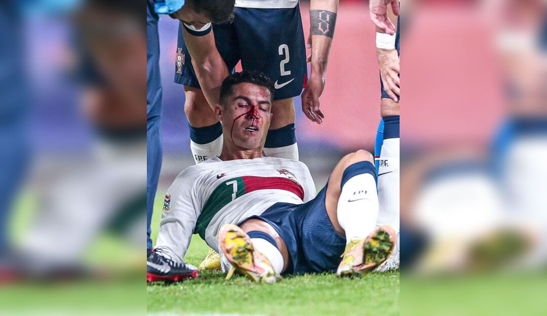 Шундан сўнг Роналдунинг бурни қонади. Терма жамоа шифокорлари қонни тўхтатишга муваффақ бўлишди, шунингдек, футболчининг бурнига дока ёпиштиришди.