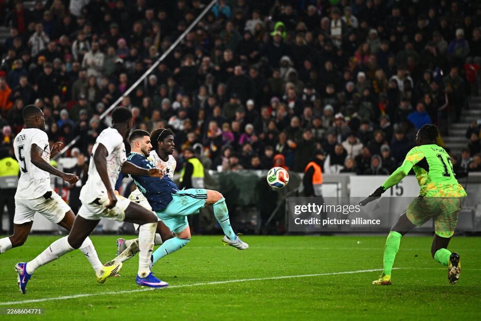 Ўйиннинг биринчи бўлимига қўшиб берилган вақтда (45+3-дақиқа) Кай Хаверц пенальтини аниқ амалга ошириб, немисларни ҳисобда олдинга олиб чиқди. Иккинчи бўлимда африкаликлар фаолликни оширишди ва 70-дақиқада Иссааку Фатаву мувозанатни тиклашга муваффақ бўлди. Бироқ ўйин тугашига оз вақт қолганда, 88-дақиқада Дениз Ундав рақиб дарвозасини ишғол қилиб, Германияга муҳим ғалабани тақдим этди.