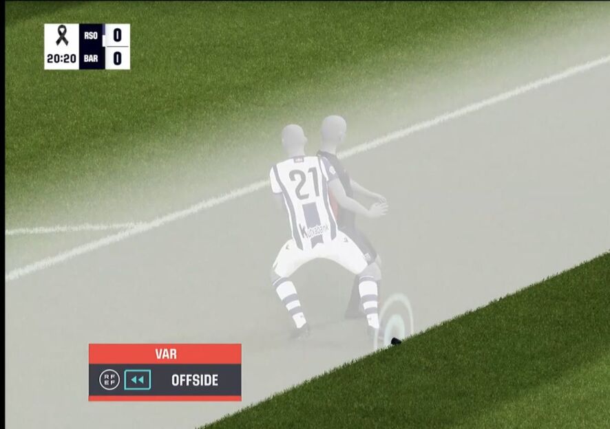 "Барселона" ҳужумчиси "Сосьедад" дарвозасига гол урганидан сўнг ҳакам Гильермо Куадра Фернандес ВАР ёрдамида офсайд бўлганини эълон қилди. Яримавтомат технология офсайдни аниқлашда ёрдам берди. Польшаликнинг бутсаси рақиб ҳимоячисиникидан дарвозага яқинроқ эди.