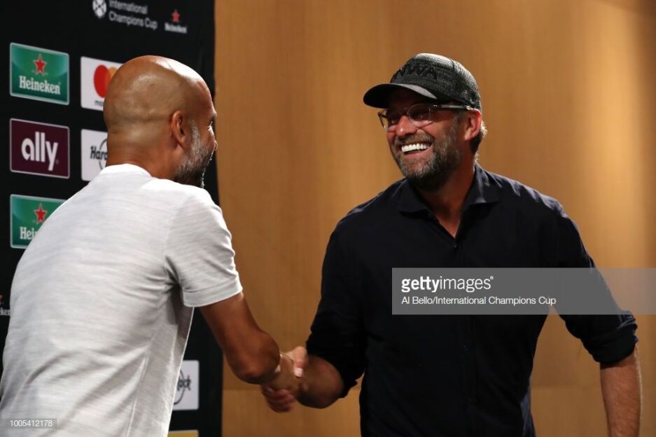 Мутахассис журналистларнинг навбатдаги саволига жавоб бераётган пайтда залга "Ливерпуль" устози Юрген Клопп кириб келди. Гвардиола ҳамкасби билан саломлашиб, жойини унга бўшатди.