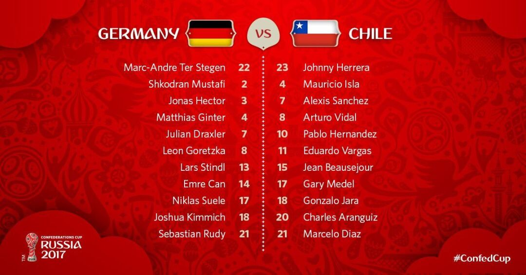 Конфедерациялар кубоги. Германия - Чили. Таркиблар маълум