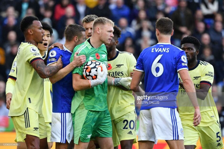 42. "Арсенал" жарима майдончаси олдида стандарт. "Лестер" ҳисобни қисқартириши мумкин.