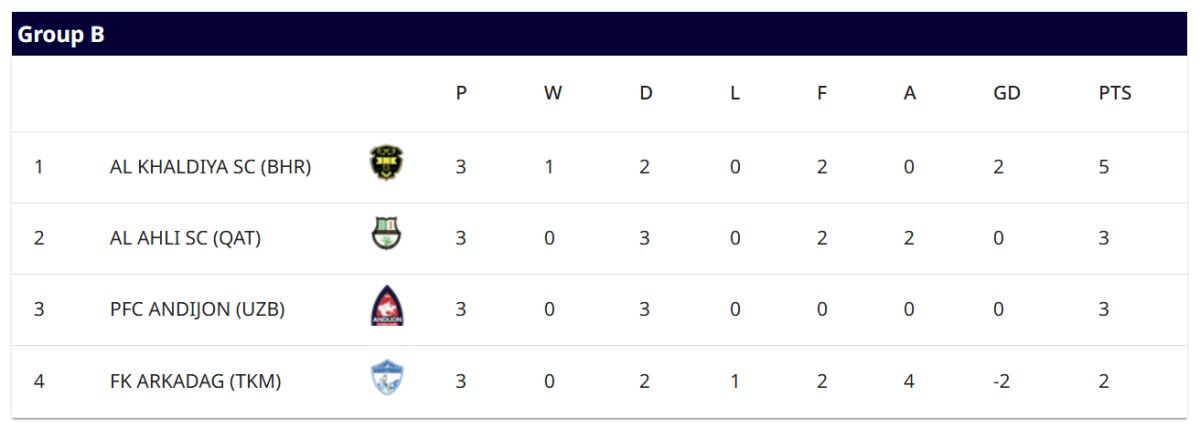 ОЧЛ 2 мусобақаси учинчи турида Туркманистоннинг "Аркадағ" клуби меҳмонда Қатарнинг "Ал Аҳли" клубига қарши майдонга тушди ва қаҳрамонлик кўрсатди. 0:2 ҳисобида имкониятни бой бераётган жамоа, якунда камбэк амалга оширди ва бир очкони юлиб олди. Бу эса "Андижон" жойлашган гуруҳдаги вазиятни янада мураккаблаштирди. Айни дамда барча жамоаларда имконият етарлича.
