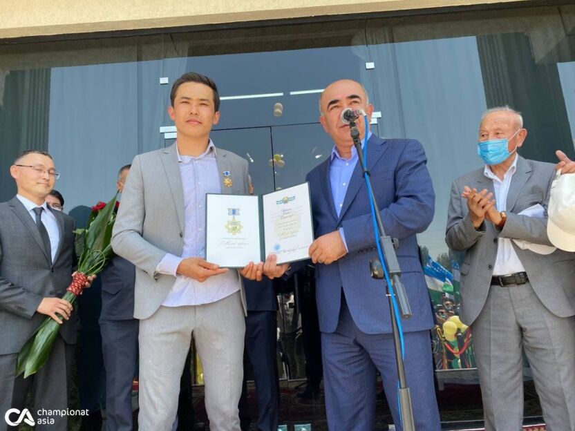 Шундайлардан бири Отабек Шукуров давлатимиз раҳбари томонидан "Мард ўғлон" ордени билан мукофотланди. Мукофотни топшириш Қарши шаҳрида бевосита Отабек Шукуров томонидан очилган "Шаржа" мактабининг тантанали очилиш маросимида бўлиб ўтди. Унда Қашқадарё вилояти ҳокими Зойир Мирзаев иштирок этиб орденни шахсан ўзи Шукуровга топширди. Шунингдек футболчининг отасига энг асл зот отлардан бири қорабайир ҳам берилди. Қуйида фотосуратларни томоша қилишингиз мумкин.