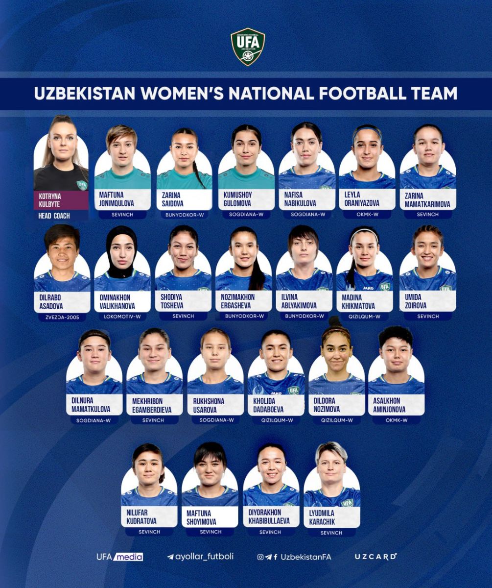 Ўзбекистон: Мафтуна Жонимқулова, Зарина Саидова, Кумушой Ғуломова, Нафиса Набиқулова, Лейла Ораниязова, Зарина Маматкаримова, Дилрабо Асадова, Омина Валиханова, Шодия Тошева, Нозимахон Эргашева, Ильвина Аблякимова, Мадина Ҳикматова, Умида Зоирова, Дилнура Маматқулова, Меҳрибон Эгамбердиева, Рухшона Усарова, Ҳолида Дадабоева, Дилдора Нозимова, Асалхон Аминжонова, Нилуфар Қудратова, Мафтуна Шойимова, Диёра Хабибуллаева, Людмила Карачик.