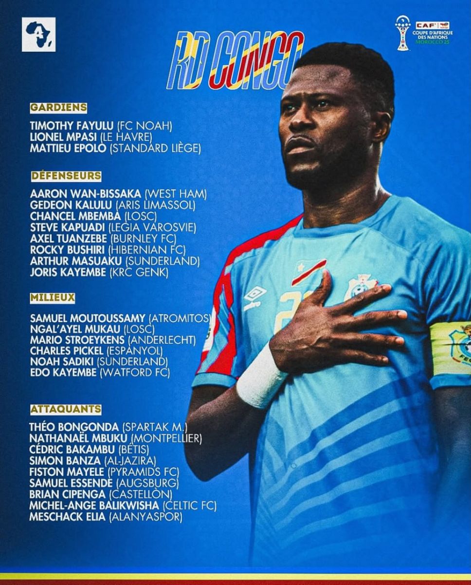 Конго ДР терма жамоаси ушбу мусобақа учун қайдномасини эълон қилди.