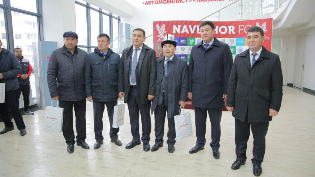 Бугун эрталаб Қирғизистоннинг Жалолобод вилоятидан ташриф буюрган бир гуруҳ меҳмонлар делегацияси Наманган вилоят ҳокими, Наманган вилоят футбол ассоциацияси президенти Хайрулла Ҳайитбаевич Бозаров, Наманган шаҳар ҳокими, “Навбаҳор” ПФК президенти Шавкат Шокиржанович Абдураззоқов ҳамроҳлигида Наманганнинг “Навбаҳор” клуби уй учрашувларини ўтказадиган Наманган шаҳридаги “Марказий” ўйингоҳга ташриф буюришди.