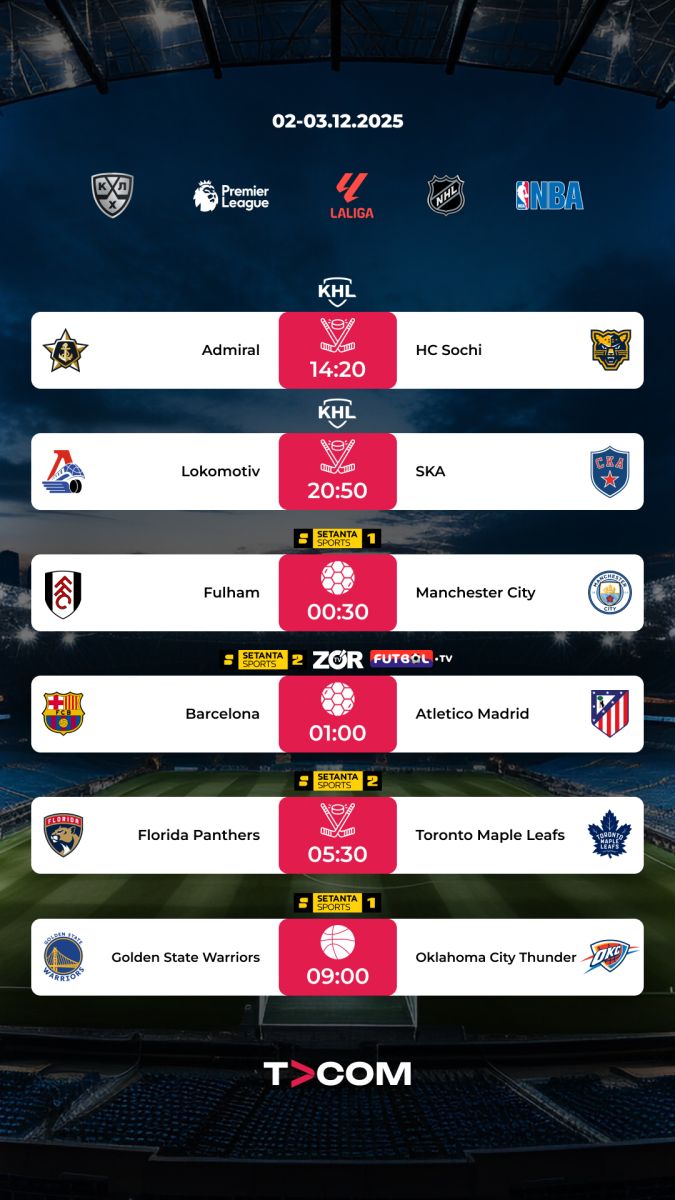 02-03.12.2025 тақвимидан ўрин олган учрашувларни TVCOM онлайн кинотеатрида кузатинг