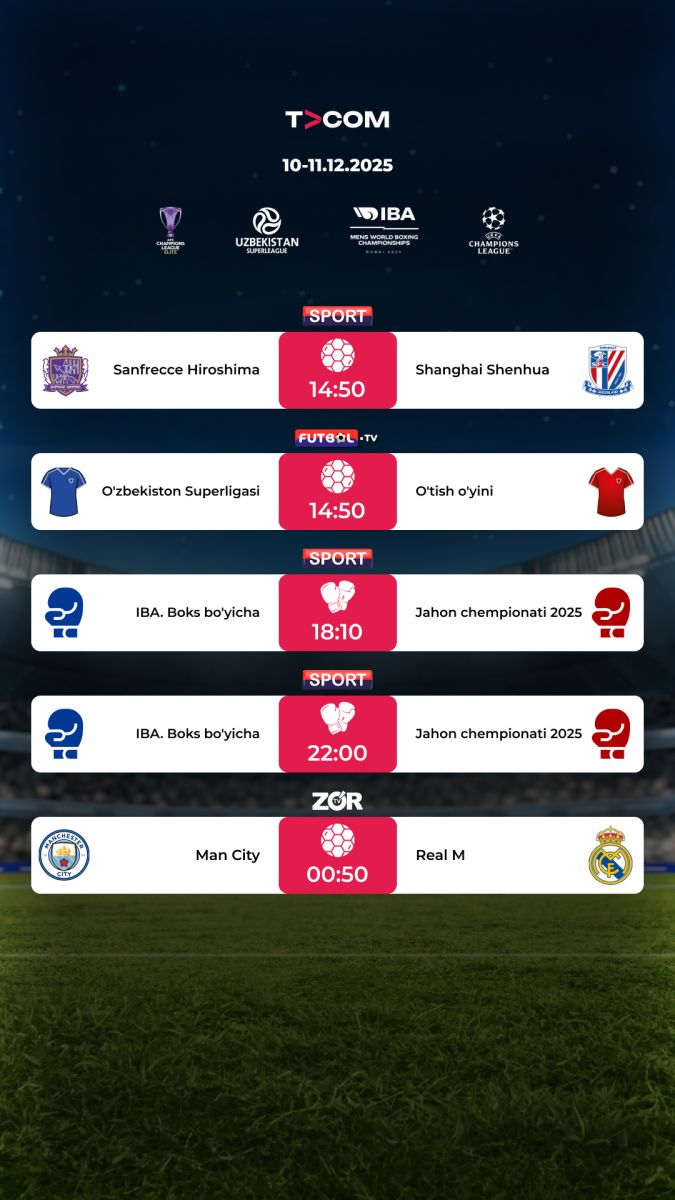10-11.12.2025 тақвимидан ўрин олган учрашувларни TVCOM онлайн кинотеатрида кузатинг.